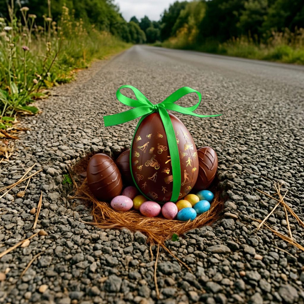 L’une des actions les plus emblématiques reste sans conteste l’Opération Oeufs de Pâques. Chaque année, avec beaucoup d’humour et d’autodérision, les motards investissent les routes pour « garnir » les nids-de-poule, fissures et autres ornières d’œufs de Pâques.